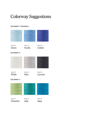 Pattern downloads include files for both rigid heddle and shaft loom weaving. Yardage requirements vary based upon loom waste.Order a kit.