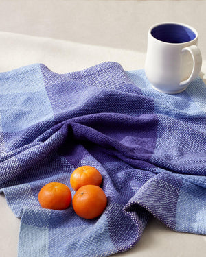This reweave of a beloved pattern in Beam 3/2 Organic Cotton makes three generous towels that are as beautiful as they are sturdy. A saturated color block in the center of the design creates visual depth, inspired by Christine’s childhood summers spent with her grandparents, and the view to a young swimmer from the diving board of their pool.
