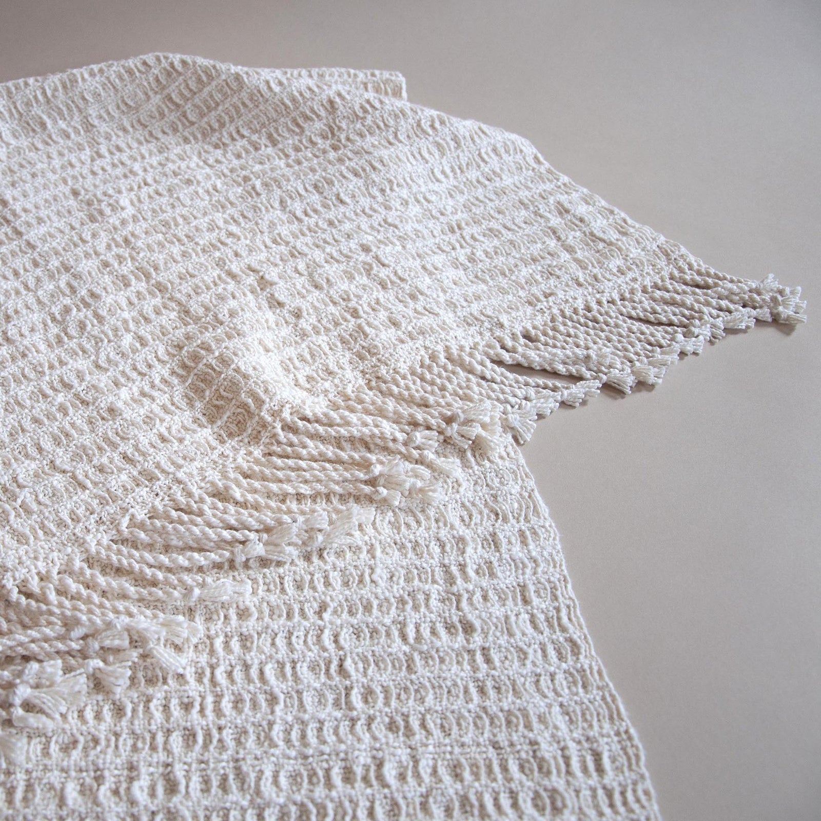 A cozy, oversized scarf, woven from Mallo cotton slub yarn.