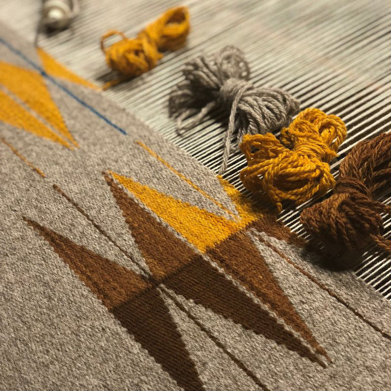This week we are featuring a bright and playful wall hanging designed and woven by Allyson Rousseau using a mix of our cotton and wool weaving yarns. We love Allyson's weaving style (& handmade frame looms!) and she has generously shared some of her design process and techniques with us.