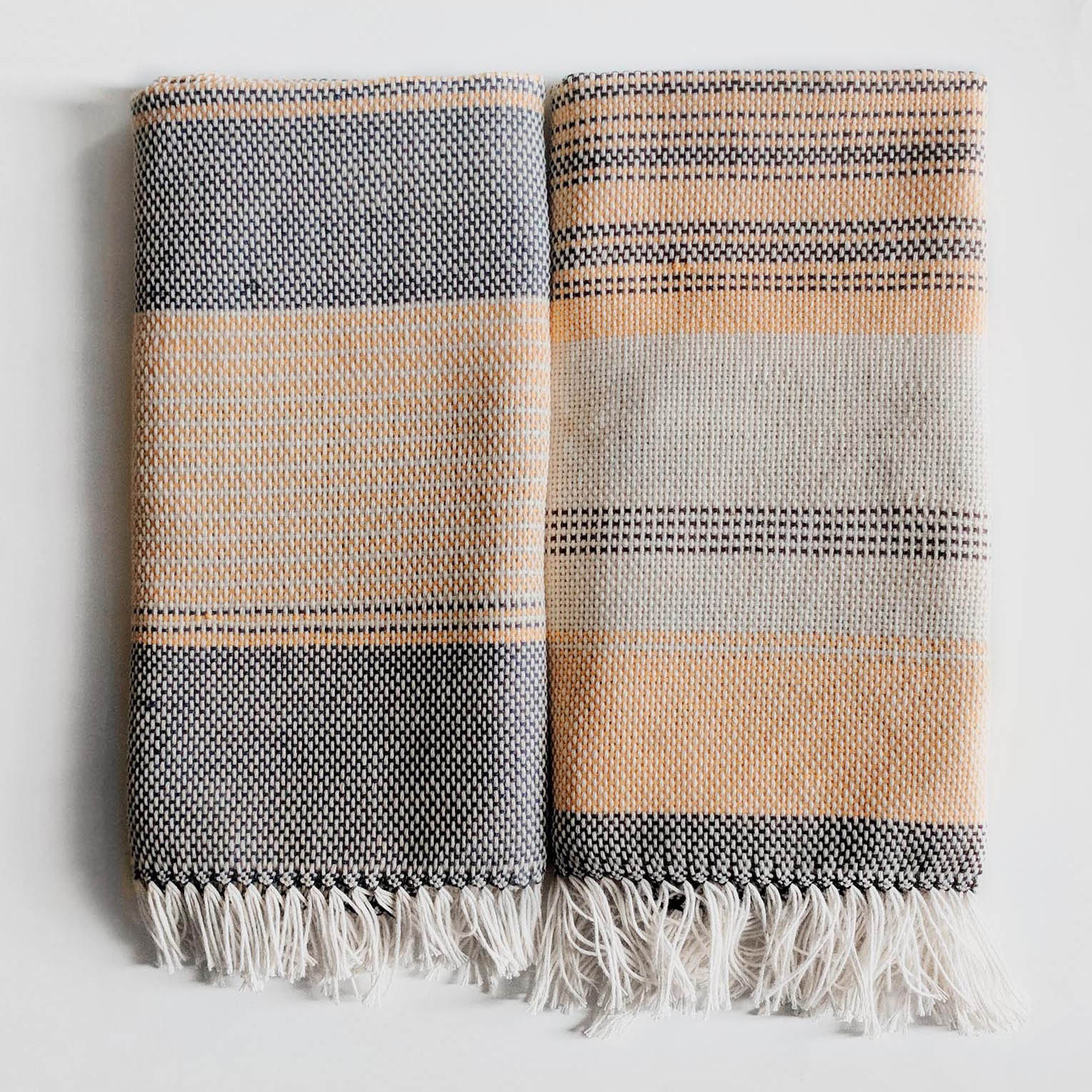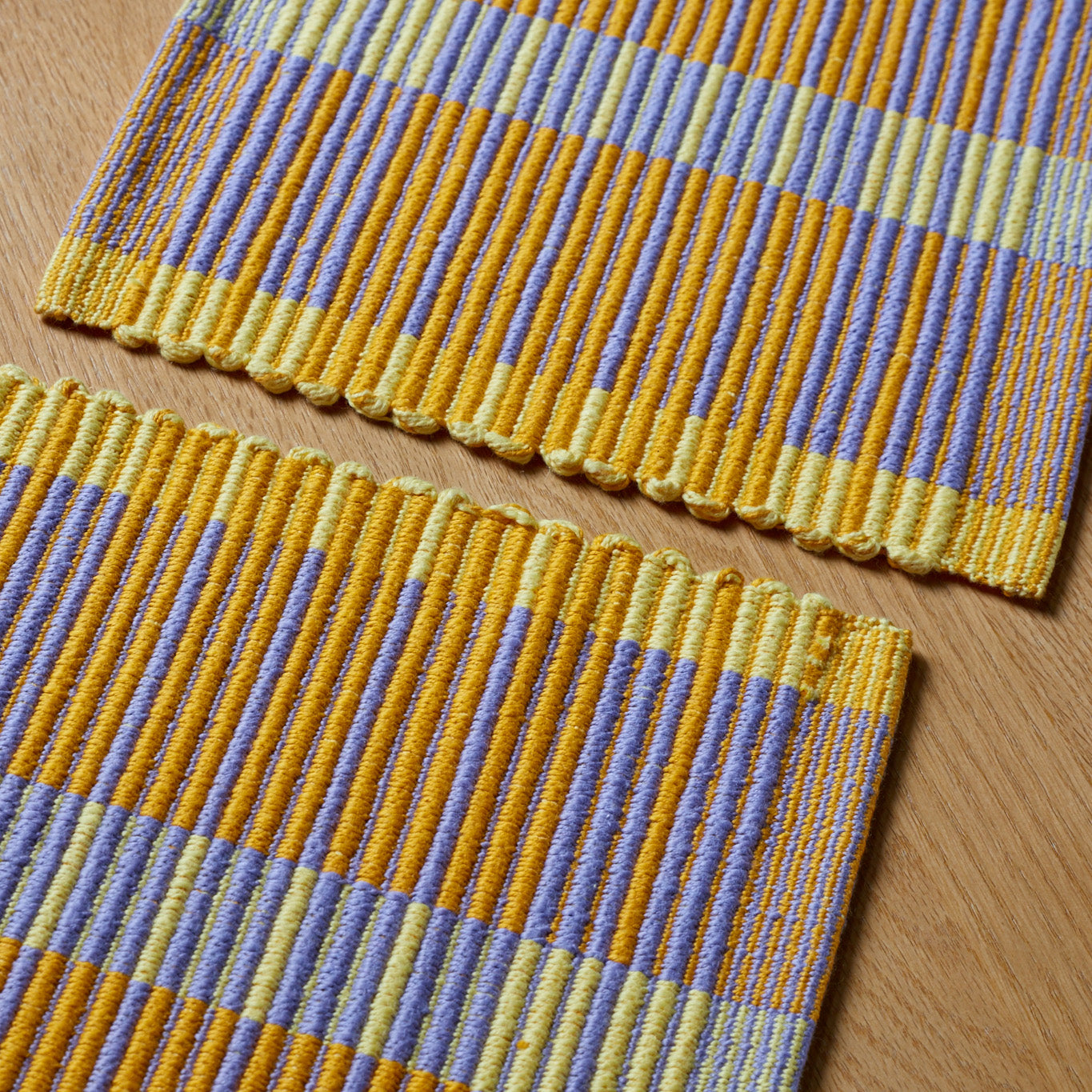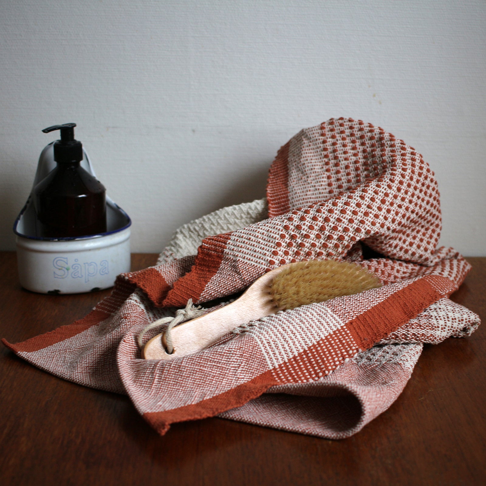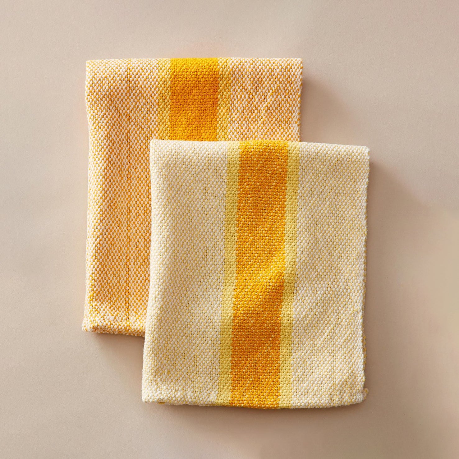 Playful striped tea towels with the cotton threads doubled and woven in plain weave, creating a soft basket weave texture with extra durability.