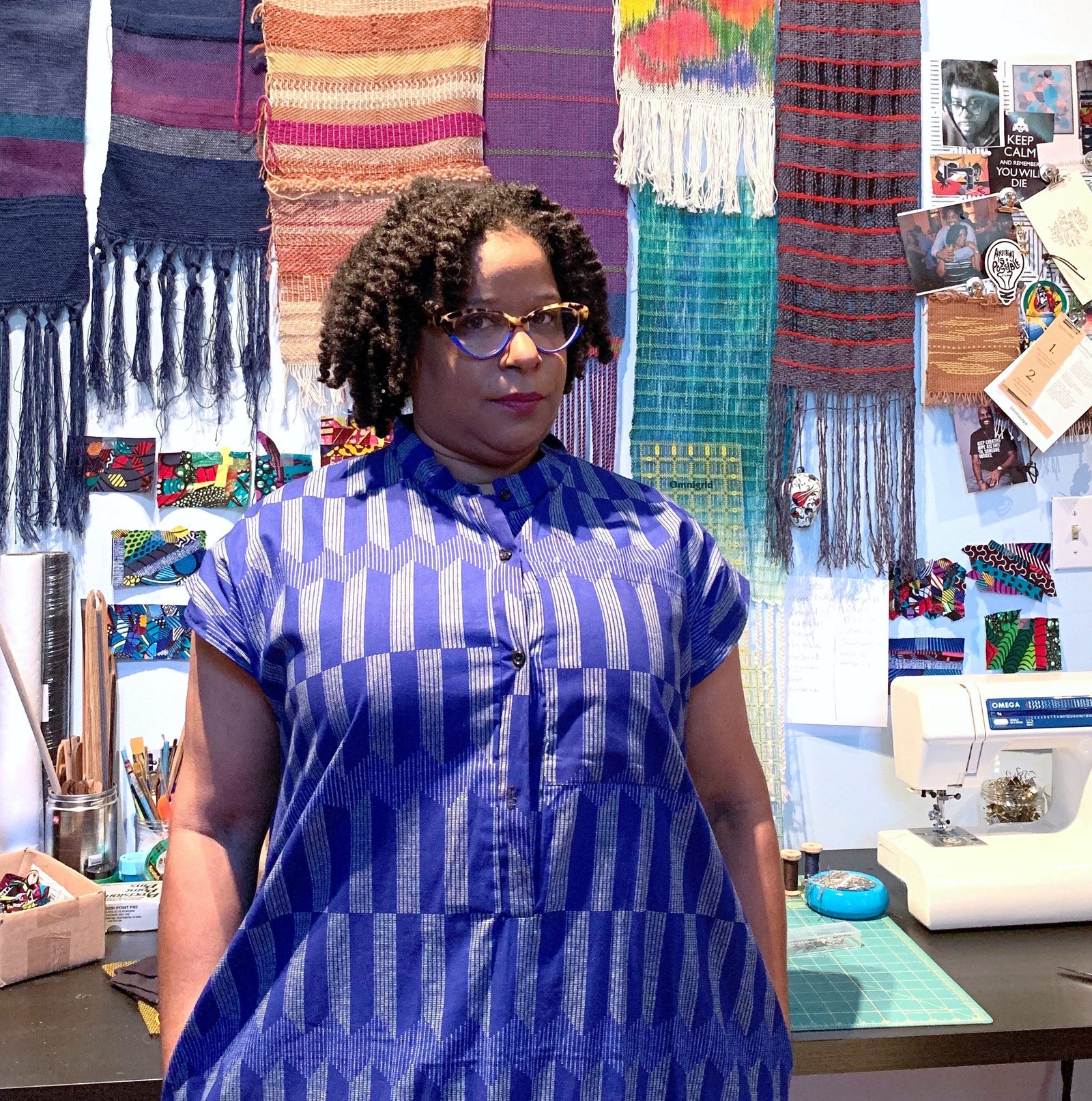 Tammi is a fiber artist based in Brooklyn, New York. Her fiber practice incorporates an array of fiber making mediums from weaving and knitting to sewing and construction using beautifully patterned and colorful fabrics and materials that are inspired by African patterns, prints, and textiles.