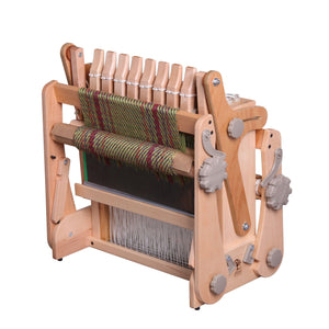 Includes: 2 finished 14 inch shuttles, 10 dpi stainless steel reed, 320 texsolv heddles, threading hooks, step-by-step instruction booklet and a sturdy padded carry bag. Just add yarn!