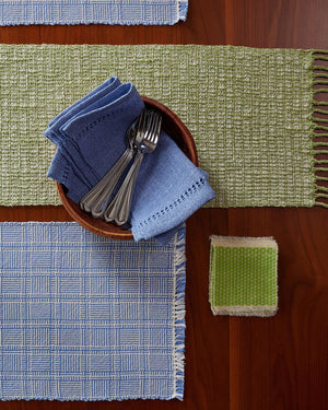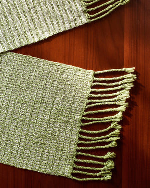 The collection contains four PDF patterns: one table runner, four placemats, napkins and coasters. The projects can be woven in any order, but we suggest saving the coasters for last.