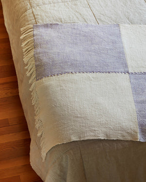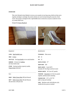This color-blocked cotton blanket is woven as two panels on one long warp, which are then sewn together selvedge-to-selvedge. Decorative stitches are sewn by hand along the seam for a final touch. This project is designed with a rigid heddle loom in mind, but can just as easily be woven on a multi-shaft loom. Order a kit.