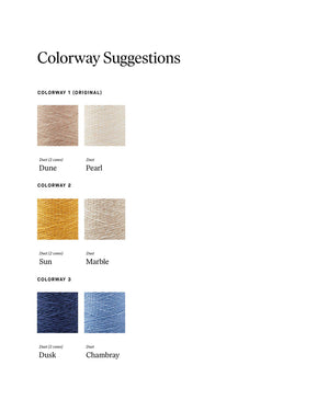 Pattern downloads include files for both rigid heddle and shaft loom weaving. Yardage requirements vary based upon loom waste. Order a kit.