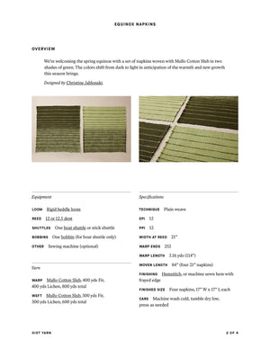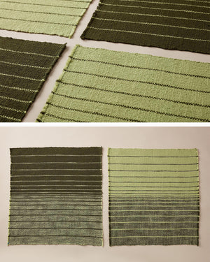 We’re welcoming the spring equinox with a set of napkins woven with Mallo Cotton Slub in two shades of green. The colors shift from dark to light in anticipation of the warmth and new growth this season brings. Order a kit.