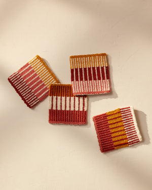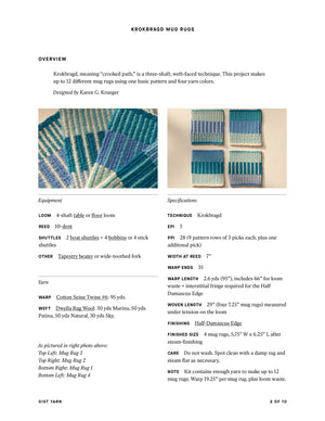 Krokbragd, meaning “crooked path,” is a weft-faced technique suitable for Rigid Heddle as well as shaft-loom weaving. This project makes up to 12 different mug rugs using one basic pattern and four colors. Order a kit.