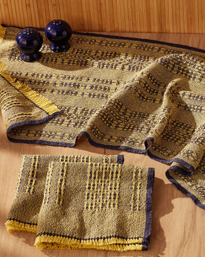 This versatile set of Swedish Lace table linens combines the soft suppleness of 8/2 Beam Organic Cotton with the delicious textural crispness of Duet Cotton/Linen. The pieces are woven in the colors of Sweden, the “Land of the Midnight Sun”, evoking the beauty of their summer skies. These are relaxing weaves, employing just one weft yarn. Weave as shown or use the table of yardage requirements to create your own combination. Order a kit.