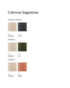 Inspired by traditional Twill samplers, this scarf combines Point Twill, Balanced Twill, and Broken Twill for a bold visual effect. The slub texture of Mallo softens the linear pattern, as if it were drawn by hand. Order a kit.