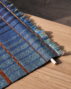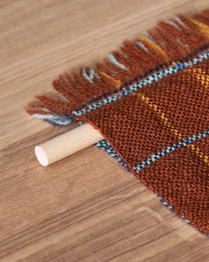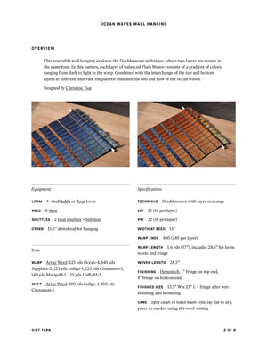 This reversible wall hanging explores the Doubleweave technique, where two layers are woven at the same time. In this pattern, each layer of balanced Plain Weave consists of a gradient of colors ranging from dark to light in the warp. Combined with the interchange of the top and bottom layers at different intervals, the pattern emulates the ebb and flow of the ocean waves. Order a kit.