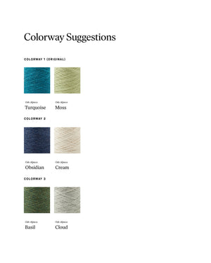 Pattern downloads include files for both rigid heddle and shaft loom weaving. Yardage requirements vary based upon the loom waste. Order a kit.