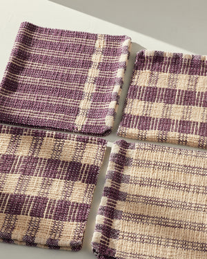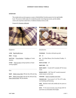 A set of cotton and linen towels woven using a pick-up stick and a supplementary weft to create a small Overshot motif, similar to Halvdräll on a 4-shaft loom. Order a kit.