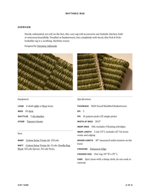 Sturdy, substantial, yet soft on the feet, this cozy rug will accessorize any bedside, kitchen, bath or entryway beautifully. Treadling as Basketweave, but completely weft-faced, this Pick & Pick-lookalike rug is a soothing, rhythmic weave. Order a kit.