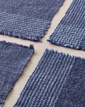 A timeless set of napkins woven with Duet Cotton/Linen in two contrasting hues. Color-and-Weave is employed to create a pattern reminiscent of hand-stitched or quilted fabrics.