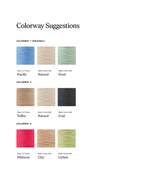 Pattern downloads include files for both rigid heddle and shaft loom weaving. Order a kit.
