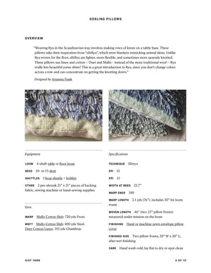 I’ve finished weaving two Gosling pillow covers on my rigid heddle loom and love the color combination and overall result. However, there was very little yarn left once I was done and throughout the weaving process I was a bit worried that I’d run out. I understand not wanting to include too much yarn and increase the price, but just be mindful of your use to make sure you don’t run out.