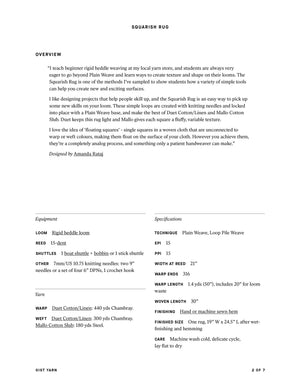 Pattern downloads include files for both rigid heddle and shaft loom weaving. Yardage requirements vary based upon loom waste. Order a kit.