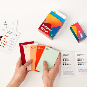 Whether you’re using the deck to intuitively put together color combinations, following the instruction booklet to learn color theory concepts, or responding to a Challenge Card, there’s no wrong way to play with Palette Scout—just endless opportunities for creativity and learning.