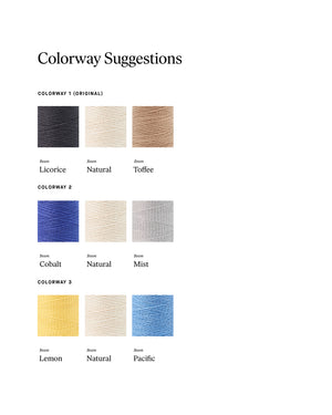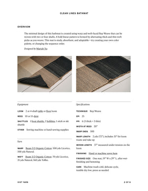 The minimal design of this bathmat is created using warp and weft-faced blocks, a structure very similar to Rep Weave that only requires two shafts. A bold linear pattern is formed by alternating thick and thin weft picks as you weave. This mat is study, absorbent, and adaptable—try creating your own color palette, or changing the order of the blocks. Order a kit.