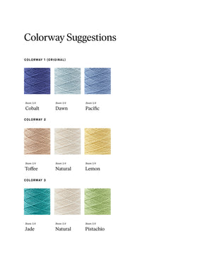 Weft: Beam 3/4 Organic Cotton210 yds Cobalt, 60 yds Dawn, 60 yds Pacific.