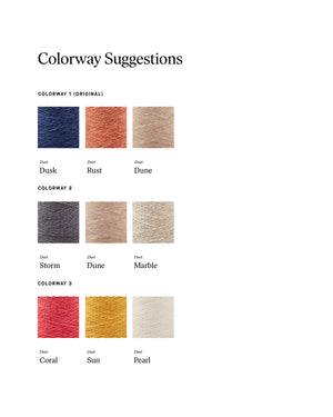 Weave two of our favorite Duet patterns with just three cones of yarn: The Minimalist Scarf by Mariah Gaar and Citrus Towels by Emma Rhodes. The Citrus Towels is a straight-forward, beginner-friendly project with a striped warp and solid color weft. The Minimalist Scarf incorporates a unique skip-dent detail when sleying the reed and utilizes two shuttles in some areas of the pattern. As these are plain weave projects, they can be woven on either a rigid heddle or multi-shaft loom. Order a kit.