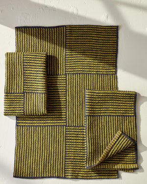 Deflected Doubleweave is a magical structure that infuses depth and drama into the simplest threading and easy-to-learn treadling. The combination of this float-rich weave with Duet’s soft cotton bound by fine linen makes these towels soft, thick and absorbent in a stylized, graphic, yet timeless design. This project is most vibrant when woven with high-contrast colors. Pattern includes a Countermarch skeleton tie-up. Order a kit.
