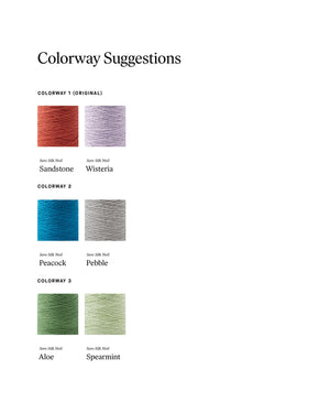 Pattern download includes files for both rigid heddle and shaft loom weaving. Yardage requirements and dimensions vary based upon loom and waste. Order a kit.