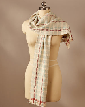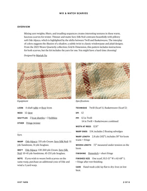 Mixing yarn weights, fibers, and treadling sequences creates interesting textures in these warm, luscious scarves for winter. Thinner and matte Sero Silk Noil contrasts beautifully with pillowy soft Ode Alpaca, which is highlighted by the shifts between Twill and Basketweave. The interplay of colors suggests the illusion of a shadow, a subtle twist to classic windowpane and plaid designs.