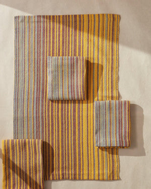 The Sunset Towels have been a customer favorite since they were first published in the January/February 2019 issue of Handwoven Magazine. Re-introduced woven with Beam 8/2 Organic Cotton in the warp and weft, we were tempted to rename them the Sunny Disposition Towels because they exude pure joy on the loom and in your kitchen. As with the original, feel free to follow the warp color order exactly, or play at your warping reel or board to develop your own gradations. Order a kit.
