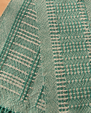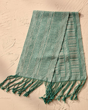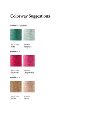 This springtime scarf made with Beam 8/2 Organic Cotton and Sero Silk Noil features lace blocks that resemble little fences following a path over the hills and valleys of the wearer’s neck and shoulders. Additionally, due to Beam’s twist, the cloth develops a tracking pattern after wet-finishing, which introduces a subtle dimension to the design. Use the colors shown, or select colors in a similar hue to gently draw out the lace patterning. Order a kit.