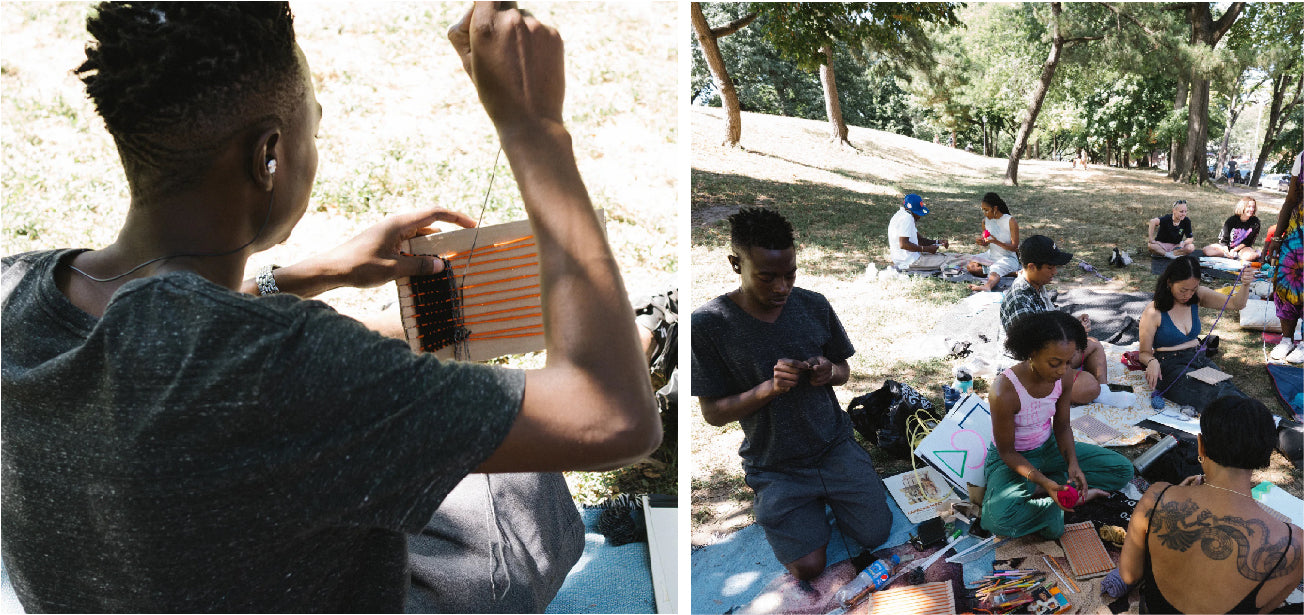 To be able to participate in a collective gathering is about the art of knowledge-sharing. For me, it's important to take education and in-person teaching out of the classroom. Reclaim the safety of gathering outdoors, where folks are free to be who they are and through this weaving exploration, reclaim time and space.