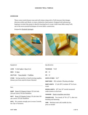 These cotton towels feature warp and weft stripes, along with a Twill structure that changes direction within each block, to create a distinctive check pattern. Designed with adventurous beginners in mind, this project is ideal for learning how to create a bold visual affect using Twill, one of the most essential techniques of woven fabric construction. Order a kit.