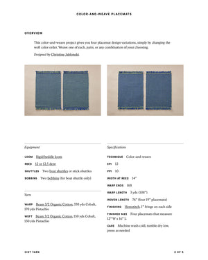 A colorful set of placemats to brighten your table. This Color-and-Weave project gives you four placemat design variations, simply by changing the weft color order. Order a kit.