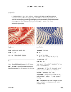 A vivid set of linens to add a bit of wonder to your table. This pattern is a good introduction to overshot weaving, and creates graphic, high-contrast blocks. Weave two placemats and one runner all on one warp or wind a longer warp and experiment to see what happens when you let go of the pattern rules. This pattern lends itself easily to play, just have fun with it! Order a kit.