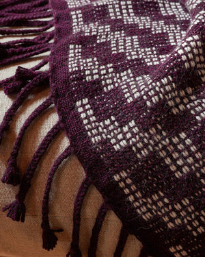 This cozy alpaca blanket combines a 4-shaft Crackle threading and an Overshot treadling, resulting in a unique textured pattern. The structure requires two shuttles, alternating tabby and pattern picks as you weave. Order a kit.