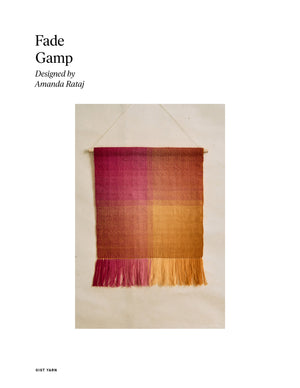 Weavers make gamps to try out different colors, weaving structures, and treadling patterns. This simple color gamp uses two colors to explore basic color theory, contrast, and value, as well as how colors mix on the loom. By using all the values from two colors of Array, the colors fade from dark to light and back again with almost no break. The result can be hung on the wall as inspiration or used flat in your home. Order a kit.