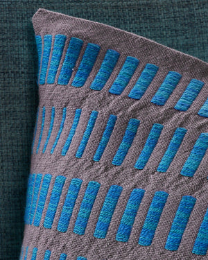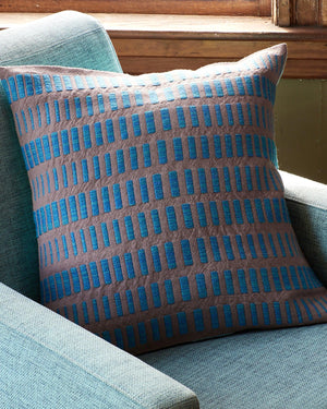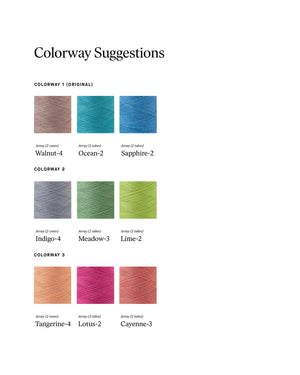 Designed by Christine NovotnyThese wool pillow shams are woven in two blocks of Monk’s Belt. The blocks vary from edge to edge in the threading, gradating across the fabric like ripples in the water. Two colors of Array Wool are held together and used as the pattern weft, creating texture and tonality that pops against the solid color plain weave (tabby) base. Order a kit.
