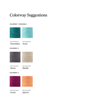 Pattern downloads include files for both rigid heddle and shaft loom weaving. Yardage requirements vary based upon loom waste. Order a kit.