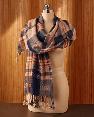 A contemporary take on plaid, reimagined with Skip Dent and spaced weft techniques to add texture and visual interest. Using Ode and Array, this cozy and remarkably soft oversized wrap weaves up quickly, and is sure to become your new favorite fall or winter accessory.