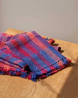 These Basketweave placemats draw their inspiration from the colors of the summer night sky during the longest days of the year. Basketweave is a variation of Plain Weave with doubled warp and weft threads, which emphasizes the texture of the weave structure and the saturated colors of Duet Cotton/Linen. The light and airy fabric invites warm weather gatherings and the feeling of simplicity that comes with the summer season. Order a kit.